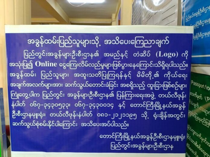 ပြည်တွင်းအခွန်များဦးစီးဌာန ၏ နာမည်အသုံးချပြီး အွန်လိုင်းလိ-မ်လ-ည်မှုများ ဖြစ်ပွားနေသိသည့်အတွက် ပြည်သူများအနေဖြင့် ကိုယ်ရေးအချက်အလက်များကို ဆက်သွယ်တောင်းခံသူများကို လုံးဝပေးဆောင်ခြင်းမပြုလုပ်ဘဲ အခွန်ဦးစီးဌာနမှူးရုံးများကို ဆက်သွယ်စုံစမ်းကြရန် ပြည်တွင်းအ ခွန်များဦးစီးဌာနက အသိပေးထားသည်။