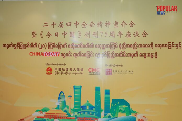 ယနေ့ နိုဝင်ဘာ ၂၁ ရက်တွင် “တရုတ်ကွန်မြူနစ်ပါတီ (၂၀) ကြိမ်မြောက် ဗဟိုကော်မတီ၏ စတုတ္ထအကြိမ် စုံညီအစည်းအဝေးကို လေ့လာခြင်း နှင့် China Today မဂ္ဂဇင်း ထုတ်ဝေခြင်း ၇၅ နှစ်ပြည့်အထိမ်းအမှတ် ဆွေးနွေးပွဲ” ကို မြန်မာနိုင်ငံဆိုင်ရာတရုတ်သံရုံး နှင့် China Media Group တို့မှ ကြီးမှူးကျင်းပကာ ရန်ကုန် တရုတ်ယဉ်ကျေးမှုစင်တာမှ ပံ့ပိုးကူညီမှုဖြင့် ရန်ကုန် တရုတ်ယဉ်ကျေးမှုစင်တာ၌ ကျင်းပခဲ့သည်။