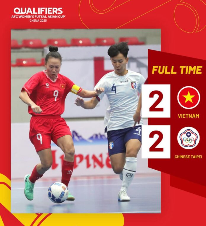 AFC Women’s Futsal Asian Cup 2025 ခြေစစ်ပွဲ အုပ်စုအဆင့်ဗိုလ်လုပွဲကို ယနေ့ ဇန်နဝါရီ (၁၉)ရက် မွန်းလွဲ(၂)နာရီ ၌ တရုတ်(တိုင်ပေ)နှင့် ဗီယက်နမ်အသင်းတို့၏ ယှဉ်ပြိုင်ကစားကြရာ တစ်ဖက်(၂) ဂိုးစီဖြင့် သရေရလဒ်ထွက်ပေါ်ခဲ့သည်။
