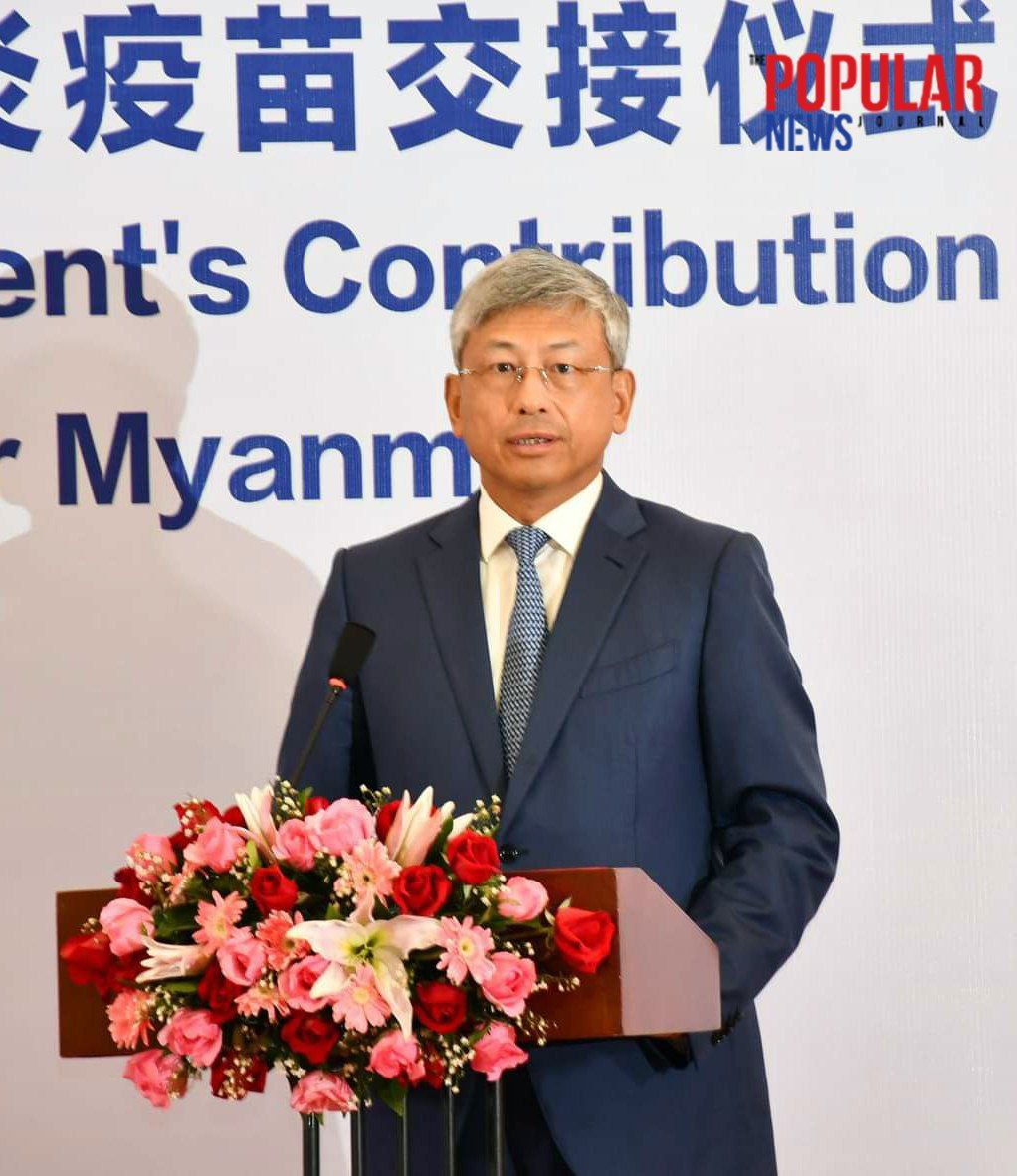 တရုတ်သံအမတ်ကြီးမစ္စတာ Chen Hai က ကိုဗစ်(၁၉)ရောဂါစတင်ဖြစ်ပွားချိန်မှစ၍ တရုတ်- မြန်မာ အချင်းချင်းကူညီကာ အခက်အခဲများအား အတူတကွကျော်ဖြတ်ခဲ့ပြီး တရုတ်နိုင်ငံမှမြန်မာနိုင်ငံအတွက် နှစ်နိုင်ငံလမ်းကြောင်းမှတစ် ဆင့် ကာကွယ်ဆေးအလုံးရေ ၅၁ သန်းအားပံ့ပိုးပေးခဲ့ပြီးဖြစ်ကာ ပြည်တွင်းဖြည့်သွင်းခြင်းနှင့်ကာကွယ်ဆေးထုတ်လုပ်ရာတွင်လည်း မြန်မာ နိုင်ငံအားကူညီပေးခဲ့သည်ဟု ပြောသည်။