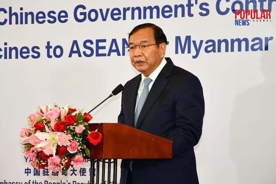 ထို့ပြင် အာဆီယံ၏မြန်မာနိုင်ငံဆိုင်ရာအကူအညီပေးရေးဆိုင်ရာကတိပြုပွဲအား မြန်ဆန်စွာအ ကောင်အထည်ဖော်သည့်အနေဖြင့် တရုတ်နိုင်ငံသည် အာဆီယံမှတဆင့် မြန်မာနိုင်ငံသို့ ကာ ကွယ်ဆေးအလုံးရေ ၂ သန်း ထပ်မံထုတ်ပေးခဲ့ခြင်းဖြစ်ကာ တရုတ်နိုင်ငံသည် အာဆီယံနိုင်ငံများအား ကာကွယ်ဆေးအလုံးရေ သန်း ၆၀၀ ကျော် ပံ့ပိုးပေးခဲ့ပြီးဖြစ်သည်ဟု ပြောသည်။