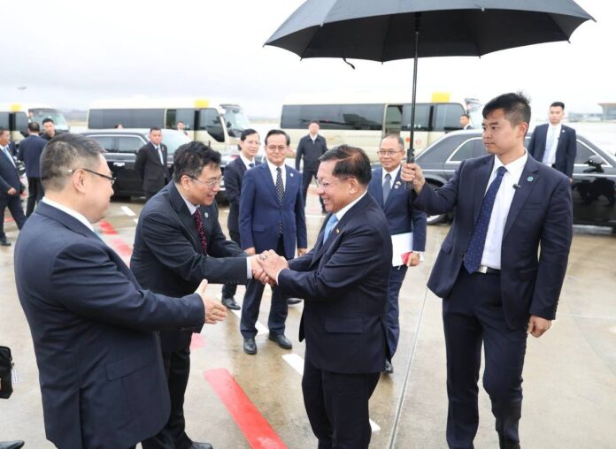 မြန်မာနိုင်ငံတော် ယာယီသမ္မတသည် ကာဇက်စတန်နိုင်ငံမှတစ်ဆင့် တရုတ်နိုင်ငံ၊ ကူမင်းမြို့ရှိ ကူမင်းလေ ဆိပ်၌ခေတ္တရပ်နားစဥ် Mr. Hu Dapeng မှကြိုဆိုနှုတ် ဆက်ပြီး လေဆိပ်ဧည့်ခန်းမဆောင်၌တွေ့ဆုံခဲ့ကြခြင်းဖြစ်သည်။
