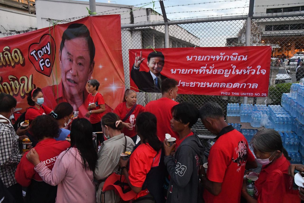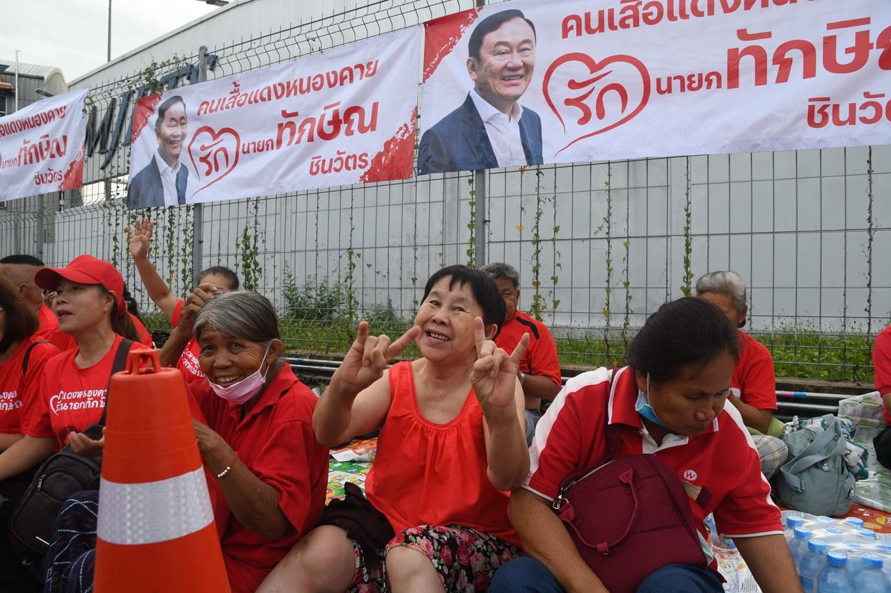 ရှပ်နီပါတီဖြစ်တဲ့ ဖြူထိုင်းပါတီထောက်ခံသူများသည် ယခုအင်္ဂါနေ့မနက်ပိုင်းက ၀န်ကြီးချုပ်ဟောင်း သက်ဆင် ထိုင်းသို့ရောက်ရှိလာမှုကို စောင့်ကြိုနေခဲ့ကြသည်။