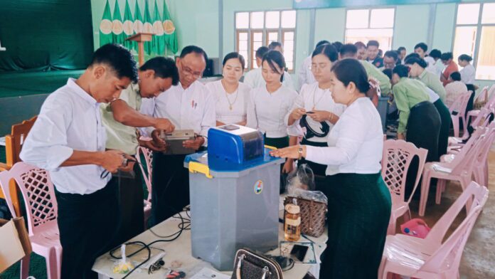 HomeNewsLocal Newsနယ်များတွင် မြန်မာအီလက်ထရောနစ်မဲပေးစက် အသုံးပြုနည်းသင်ကြား​နေ