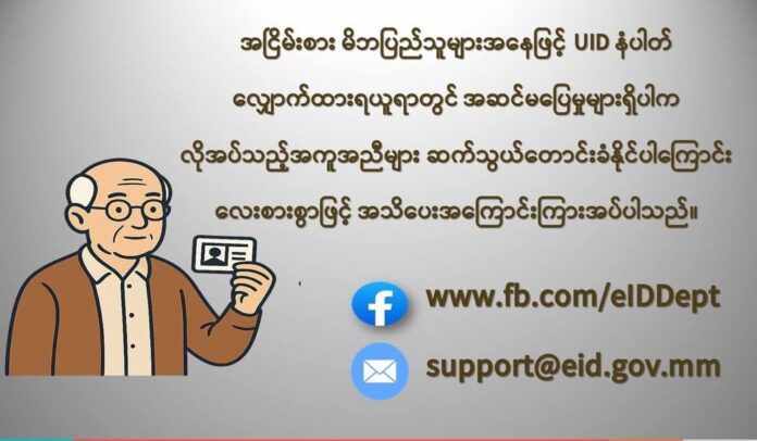 ထိုသိူ့ထုတ်ပေးရာတွင် အထူးသဖြင့် အသက်အရွယ်ကြီးပြီဖြစ်သည့်အဖိုးအဖွားများ၊ သွားလာခက်ခဲသူများအတွက် အိမ်တိုင်ရာရောက် (Home Service) ဖြင့် UID လုပ်ငန်းကိုအဆင်ပြေဆုံးအောင် ဆောင်ရွက်ပေးနေကြောင်းလည်း သိရသည်။