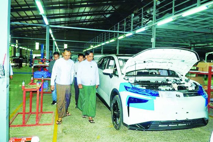ပဲခူးတိုင်း၊ ပဲခူးမြို့ရှိ ပဲခူးစက်မှုဇုန်၌ “မြင့်မြတ်မောင်” ကုမ္ပဏီလီမိတက်မှ SKD စနစ်ဖြင့် လျှပ်စစ်သုံးမော်တော်ယာဉ်များတပ်ဆင်ထုတ်လုပ်သည့်စက်ရုံ၌ Dongfeng တံဆိပ် EV ကားများကိုတပ်ဆင်ထုတ်လုပ်လျက်ရှိသည်။