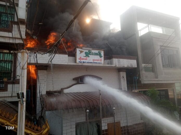 ယနေ့ ဖေဖော်ဝါရီ (၂၄)ရက်၊ နံနက် (၉)နာရီအချိန်ခန့်က ပြည်ကြီးတံခွန်မြို့နယ် (၆၈) A/ (၁၃၂)လမ်းနှင့် (၁၃၃)လမ်း ကြားရှိ ရှင်းသန့်ဟိုတယ်နှင့် ဘူဖေးထမင်းဆိုင် မီးလောင်မှုဖြစ်ပွားကြောင်း သတင်းအရ နယ်မြေခံ မီးသတ်များထွက်ခွါငြှိမ်းသတ်ခဲ့ကြကြောင်း သိရသည်။