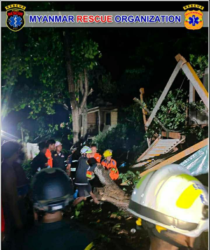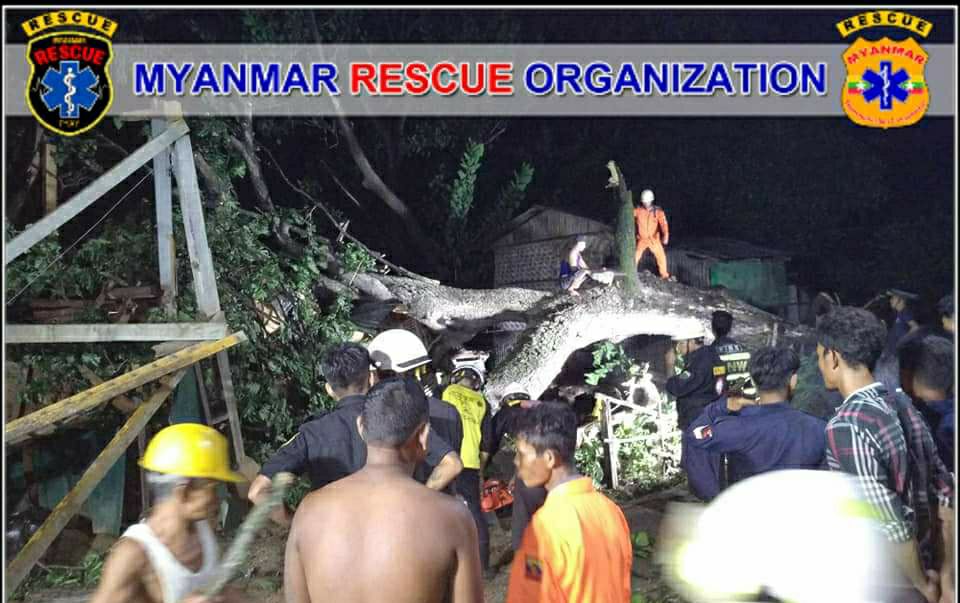 “လဲကျသွားတဲ့ကုက္ကိုလ်ပင်ကအကြီးကြီးပဲ အိမ် ၃ လုံးပေါ်ပိနေတယ်ဆိုတာသတင်းရတာနဲ့ ကူညီကယ်ဆယ်ရေးသွားလုပ်ပေးခဲ့တာပါ၊ ထိခိုက်ဒဏ်ရာရတဲ့လူတွေရှိပေမယ့် မစိုးရိမ်ရပါဘူး၊ ဒဏ်ရာတွေကိုဆေးကြောသန့်စင်ပေးပြီး ဆေးထည့်ပေးခဲ့ပါတယ်၊ ဆေးရုံမပို့ရပါဘူး”ဟု လူမှုကူညီရေးအသင်းဝင်တစ်ဦးကပြောသည်။