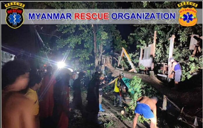 “လဲကျသွားတဲ့ကုက္ကိုလ်ပင်ကအကြီးကြီးပဲ အိမ် ၃ လုံးပေါ်ပိနေတယ်ဆိုတာသတင်းရတာနဲ့ ကူညီကယ်ဆယ်ရေးသွားလုပ်ပေးခဲ့တာပါ၊ ထိခိုက်ဒဏ်ရာရတဲ့လူတွေရှိပေမယ့် မစိုးရိမ်ရပါဘူး၊ ဒဏ်ရာတွေကိုဆေးကြောသန့်စင်ပေးပြီး ဆေးထည့်ပေးခဲ့ပါတယ်၊ ဆေးရုံမပို့ရပါဘူး”ဟု လူမှုကူညီရေးအသင်းဝင်တစ်ဦးကပြောသည်။
