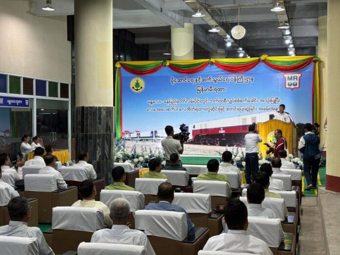 ဘက်ထရီလျှပ်စစ်စက်ခေါင်း အသုံးပြု၍ လေအေးပေးစက်ပါ လေအိတ်ရထားတွဲဆိုင်း စတင်ပြေးဆွဲခြင်း ဖွင့်ပွဲအခမ်းအနားကို ချမ်းအေးသာစံမြို့နယ်၊ မန္တလေးဘူတာကြီး၌ ယနေ့ ( နိုဝင်ဘာ ၂၂ ) နံနက်ပိုင်းက ကျင်းပပြုလုပ်ခဲ့သည်ဟု သိရသည်။