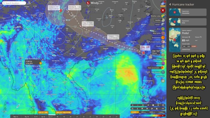 ဘင်္ဂလားပင်လယ်အော် အနောက်မြောက်ပိုင်းက လေဖိအားနည်းရပ်ဝန်းကြောင့် မြန်မာနိုင်ငံအနှံ့ မိုးထစ်ချုန်းရွားနိုင်