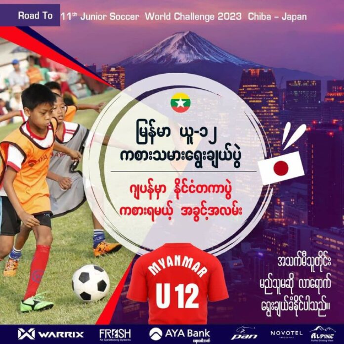 ဂျပန်နိုင်ငံတွင်ကျင်းပမည့် U12 Junior Soccer World Challenge 2023 ပြိုင်ပွဲ၀င်ပြိုင်မည့် မြန်မာ့လက်ရွေးစင် ယူ၁၂ အသင်းအတွက် လာရောက်ရွေးချယ်ခံနိုင်ကြောင်း ဘောလုံးအဖွဲ့ချုပ်ထံမှ သိရသည်။