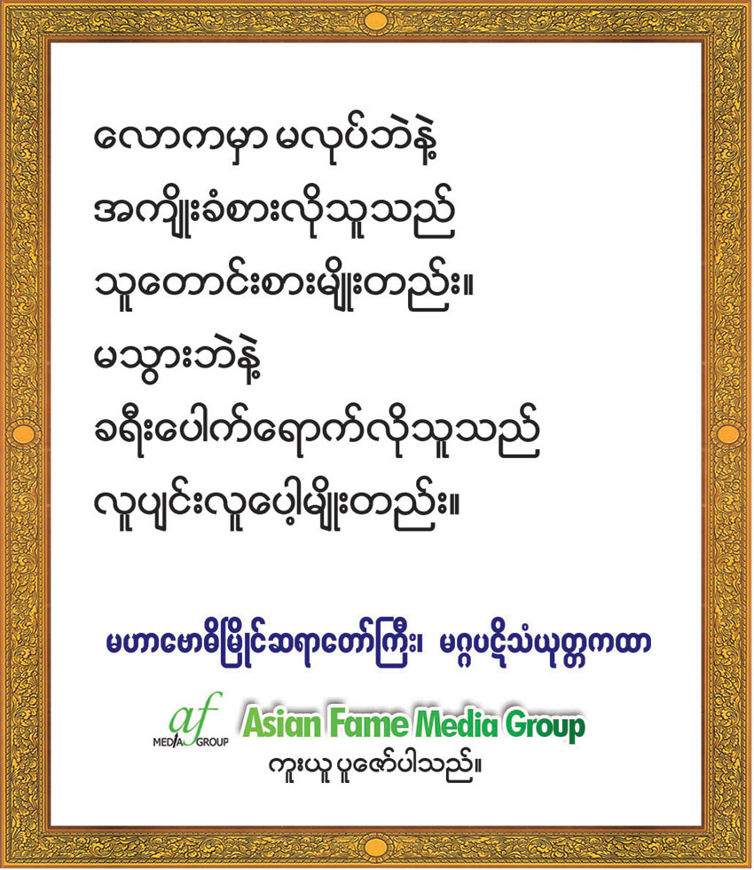HomeDhammaDhamma Quotesမဂၢပဋိသံယုတၱကထာ မဂၢပဋိသံယုတၱကထာ Written by Popular December 20, 2016 Estimated reading time: Less than 1 minutes FacebookInstagramTwitter Local News ယနေ့ မင်္ဂလာတောင်ညွှန့် နေအိမ်တိုက်ခန်းမီးလောင်မှုဖြစ်စဥ်၌ မွေးကင်းစကလေးငယ် ၁ ဦးအပါအဝင် ၅ ဦးမီးခိုးမွှန်၍ ဆေးရုံပို့ခဲ့ရ Popular - Local News ကောလင်းနှင့် ဘုတလင်တွင် လက်နက်ကိုင်အဖွဲ့များ၏ လက်နက်ကြီးဖြင့် ပစ်ခတ်မှုကြောင့် ကိုရင် (၂)ပါးနှင့် ကလေးငယ်(၂)ဦး ဒဏ်ရာရ Popular - Local News ပုဂ္ဂလိကဆေးရုံအသစ်များ လိုင်စင်ချပေးရန် ကွင်းဆင်းစစ်ဆေးနေဟု ကျန်းမာရေးဝန်ကြီးပြော Popular - Local News ဖိလစ်ပိုင်နိုင်ငံတွင် လူကုန်ကူးခံရသည့် မြန်မာနိုင်ငံသား (၂၁) ဦးအနက် ပထမအသုတ်အဖြစ် (၄)ဦးအား ပြန်လည်ပို့ဆောင် Popular - Load more Ads Space Available Boost your brand’s visibility with prime ad space on our website—reach your audience effectively and drive results! Call Us at: 09-420209071 Contact Us ဆီးဂိမ်းပြိုင်ပွဲတွင် အမိနိုင်ငံအတွက် ရွှေတံဆိပ်ဆုများ ဆွတ်ခူးရယူပေးနိုင်သည့် အားကစားသမားကောင်းများဖြစ်အောင် ကြိုးစားရန် ပြည်ထောင်စုဝန်ကြီး Jeng Phang... Popular Journal - December 5, 2025 Local News ဆီးဂိမ်းပြိုင်ပွဲတွင် အမိနိုင်ငံအတွက် ရွှေတံဆိပ်ဆုများ ဆွတ်ခူးရယူပေးနိုင်သည့် အားကစားသမားကောင်းများဖြစ်အောင် ကြိုးစားရန် ပြည်ထောင်စုဝန်ကြီး Jeng Phang နော်တောင် တိုက်တွန်း Popular Journal - Local News အရှေ့တောင်အာရှ မူလတန်းပညာသင်ယူမှုတိုင်းတာစစ်ဆေးစံ၏ ဒေသဆိုင်ရာ သုတေသနအစီရင်ခံစာ ထုတ်ပြန်ခြင်း အခမ်းအနားကို ပညာရေးဝန်ကြီးဌာန တက်ရောက် Popular Journal - Local News တရုတ်နိုင်ငံသား(၂၇၈)ဦးကိုပြည်နှင်လွှဲပြောင်းပေးပြီး (၂၄၈)ဦးကို ထပ်မံထိန်းသိမ်း Popular Journal - Local News ရုရှား-မြန်မာပူးပေါင်းဆောင်ရွက်မည့် သဘာဝမြေဩဇာစက်ရုံတည်ဆောက်ရေးလုပ်ငန်းအား ဒီဇင်ဘာလတွင် စတင်နိုင်ရေး ဆွေးနွေး Popular Journal - Continue reading Popular - February 15, 2023 Local Newsယနေ့ မင်္ဂလာတောင်ညွှန့် နေအိမ်တိုက်ခန်းမီးလောင်မှုဖြစ်စဥ်၌ မွေးကင်းစကလေးငယ် ၁ ဦးအပါအဝင် ၅ ဦးမီးခိုးမွှန်၍ ဆေးရုံပို့ခဲ့ရ ရန်ကုန်တိုင်း၊ မင်္ဂလာတောင်ညွှန့်မြို့နယ်၊ ရေတွင်းကုန်းရပ်ကွက်ရှိ နေအိမ်တိုက်ခန်းတစ်ခု၏ ဒုတိယထပ်တွင် ဖေဖော်ဝါရီ ၁၅ ရက်(ယနေ့)မွန်းလွဲပိုင်းက Level 1 အဆင့်မီးလောင်မှုဖြစ်စဥ်တွင် မွေး ကင်းစကလေးငယ် ၁ ဦးအပါအဝင် ၅ ဦးမီုးခိုးမွှန်သွား၍ ဆေးရုံသို့ပို့ဆောင်ပေးခဲ့ရကြောင်း သိရသည်။ ယနေ့မွန်းလွဲ ၂ နာရီ ၅၀ မိနစ်ခန့်က မင်္ဂလာတောင်ညွန့်မြို့နယ်၊ ရေတွင်းကုန်းရပ်ကွက်၊ (၁၂၂)လမ်း ၏ နေအိမ်တိုက်ခန်းတစ်ခု၏ဒုတိယထပ်ရှိ လျှပ်စစ်ပစ္စည်းဆိုင်မှ မီးစတင်လောင်ကျွမ်းခဲ့ခြင်းဖြစ် သည်။ မီးလောင်မှုအား တာမွေမြို့နယ်မီးသတ်စခန်း၊ မင်္ဂလာတောင်ညွန့်မြို့နယ်မီးသတ်စခန်းတို့မှတပ်ဖွဲ့ဝင်များနှင့် လူမှုကူညီရေးအသင်းများက Level 1 အဆင့်ဖြင့် ဝိုင်းဝန်းငြှိမ်းသတ်ခဲ့ကြသဖြင့် နေ့လည်... Popular - February 15, 2023 Local Newsကောလင်းနှင့် ဘုတလင်တွင် လက်န
