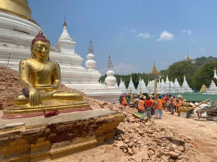 စန္ဒာမုနိဘုရားအတွင်းရှိ အပျက်အစီးများကို ရှင်းလင်းရာတွင် မန္တလေးမြို့ တော်စည်ပင်သာယာဝန်ထမ်း(၂၀၀)ဦးနှင့် တပ်မတော်သားများ ပူးပေါင်း၍ လုပ်ဆောင်ခဲ့ကြခြင်းဖြစ်ကြောင်း သိရသည်။
