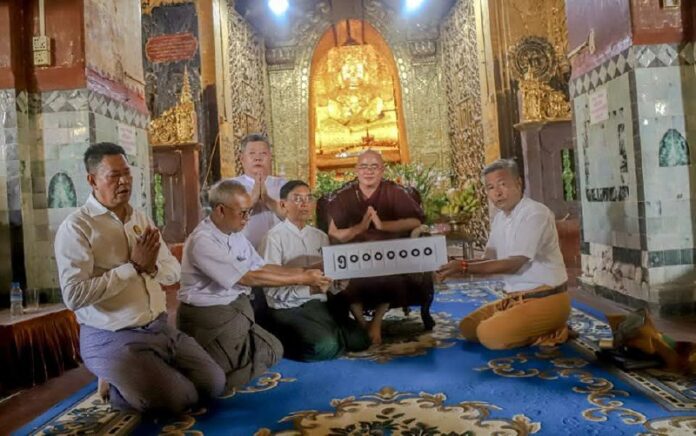 မန္တလေးတိုင်း၊ မန္တလေးမြို့သို့ရောက်ရှိတော်မူနေသည့် မိုင်းဖုန်းဆရာတော်ကြီးသည် ယနေ့ ဧပြီ ၂၁ ရက်က ငလျင်ဒဏ်သင့်ခဲ့သည့် မန္တလေးမြို့ကျက် သရေဆောင် မဟာမုနိဘုရားကြီး ဘက်စုံပြုပြင်မွန်းမံရန် အလှူငွေကျပ်သိန်း(၅၀၀)အား ဘုရားကြီးဂေါ ပကအဖွဲ့ထံ ပေးအပ်လှူဒါန်းခဲ့သည်။