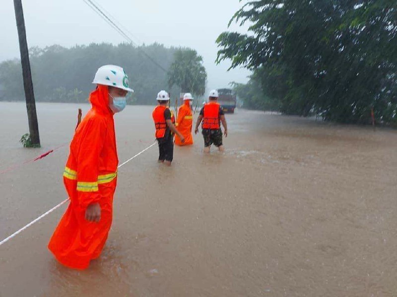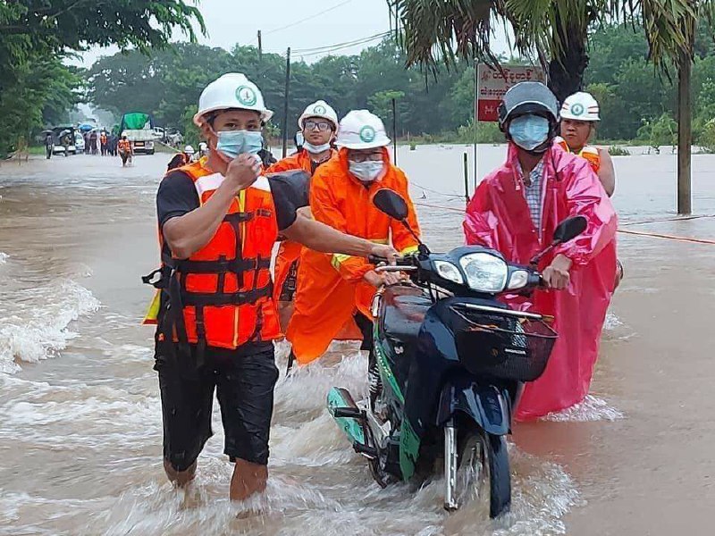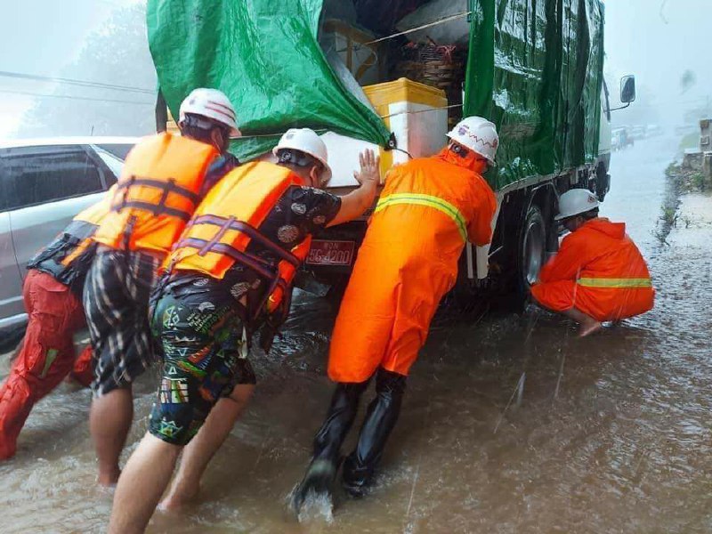 ထိုသို့ ကားလမ်းပေါ် ရေကျော်နေသဖြင့် ဖြတ်သန်းသွားလာနေသည့် ကားများနှင့် ဆိုင်ကယ်များ သွားလာမှုအဆင်ပြေစေရန် မီးသတ်တပ်ဖွဲ့ဝင်များနှင့် ဒေသခံလူမှုကူညီရေးအသင်းဝင်များက ဝိုင်းဝန်းကူညီပေးလျက်ရှိကြောင်း သိရသည်။