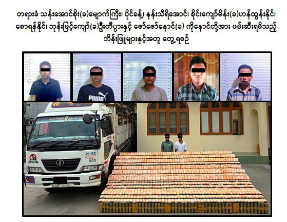 မူးယစ်တရားခံပြေး(၂)ဦးအပါအဝင် (၇)ဦးကို ငွေကျပ်(၃)ဘီလီယံကျော်တန်ဖိုးရှိ ဘိန်းဖြူများနှင့်အတူဖမ်းမိ