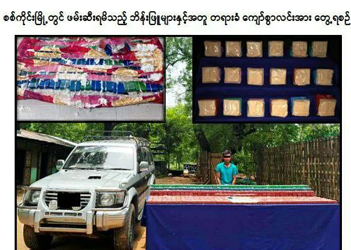 ပြီးခဲ့သည့် ဇွန် ၁၀ ရက်ည ၈ နာရီခန့်က မူးယစ်ဆေးဝါးတားဆီးနှိမ်နင်းရေးရဲတပ်ဖွဲ့ဝင်များပါဝင်သော ပူးပေါင်းအဖွဲ့သည် စစ်ကိုင်းမြို့၊ တကောင်းရပ်ကွက်အနီး၌ မန္တလေးဘက်မှ ကလေးဘက်သို့ ကျော်စွာလင်း မောင်းလာသည့် PAJERO ကားအား သတင်းအရစစ်ဆေးခဲ့ကြကြောင်း သိရသည်။