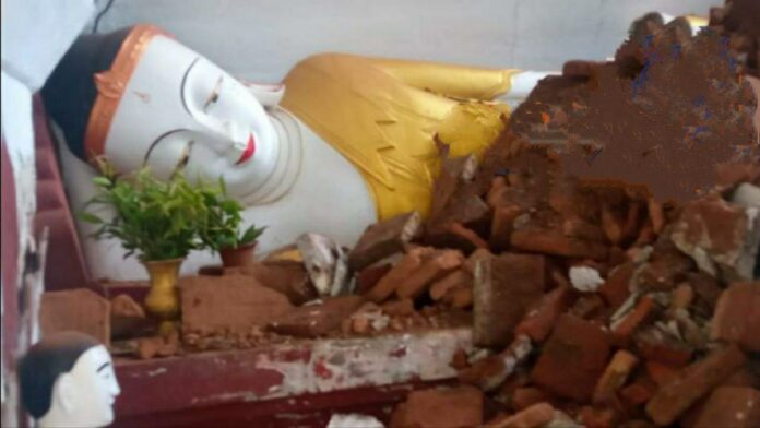မြင်းခြံမြို့တွင် မိုးသည်းထန်စွာရွာသွန်း၍ ရွှေသာလျောင်းဘုရား၏ အဆောက်အဦးပြိုကျခဲ့