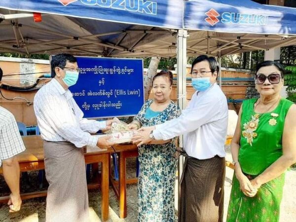 အခုလိုနဲ႔ပတ္သက္ၿပီး ျမန္မာႏိုင္ငံ႐ုပ္ရွင္အစည္းအ႐ုံးမွ အဖြဲ႕ဝင္ျဖစ္သူ ဦးေအးၾကဴေလးက” အုပ္ခ်ဳပ္ျဖန္႔ခ်ီအလႊာအဖြဲ႕ဝင္မ်ားကိုျမန္မာ ႏိုင္ငံ႐ုပ္ရွင္အစည္းအ႐ုံးကဆန္ ဆီ ပဲဆား ငါး ေသတၱာ၊ျမန္မာ့လူမႈထူးခြၽန္ဆုအဖြဲ႕ဝင္မ်ားႏွင့္သ႐ုပ္ေဆာင္အဲလက္စ္လြင္တို႔ကၾကာဇံ ငါးေျခာက္မ်ားလႉဒါန္းခဲ့ပါတယ္” လို႔ေျပာပါတယ္ ။