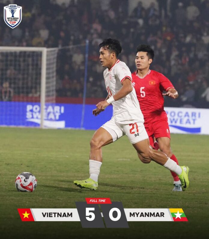 အာဆီယံမစ်ဆူဘီရှီ ဖလားပြိုင်ပွဲ အုပ်စုအဆင့်နောက်ဆုံးပွဲစဉ်ကို ယနေ့ ဒီဇင်ဘာ (၂၁)ရက် ည(၇)ခွဲ အချိန်၌ မြန်မာ နှင့် ဗီယက်နမ်အသင်းတို့ ယှဉ်ပြိုင်ကစားခဲ့ရာ မြန်မာအသင်းက (၅)ဂိုးပြတ်ဖြင့် ရှူံးနိမ့်ခဲ့ရသည်။