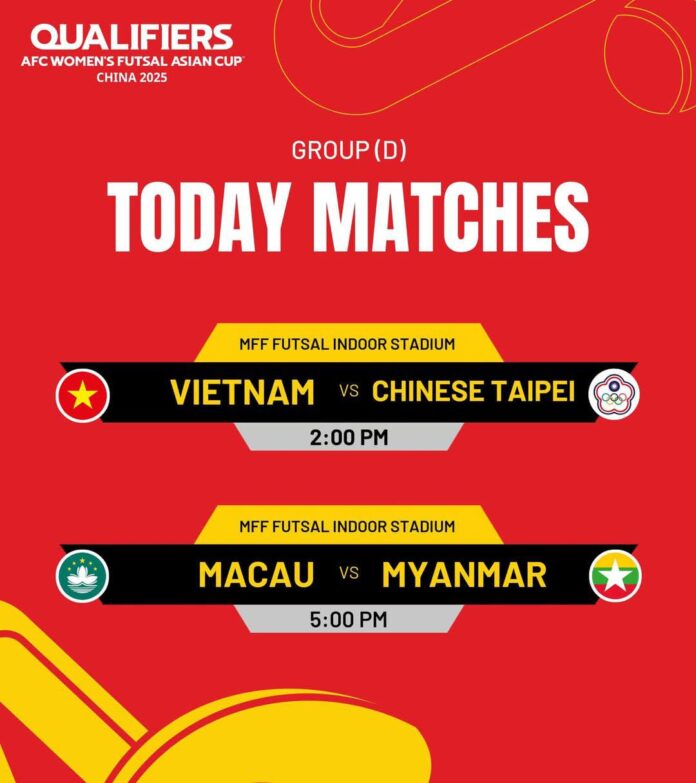 AFC Women’s Futsal Asian Cup 2025 ခြေစစ်ပွဲ အုပ်စု (D)ပွဲစဉ်များကို ယခုလ ဇန်နဝါရီ(၁၅)ရက်မှ (၁၉)ရက်အထိ မြန်မာနိုင်ငံက အိမ်ရှင်နိုင်ငံအဖြစ် လက်ခံကျင်းပနေခြင်းဖြ စ်သည်။