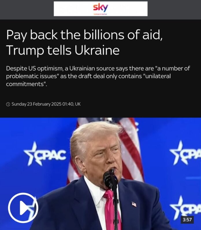 “ကျွန်တော်တို့ ပေးခဲ့တဲ့ ငွေအတွက် သူတို့ကို တစ်ခုခု ပြန်ပေးစေချင်တယ်” ဟု ထရမ့်က CPAC ကွန်ဖရင့်တွင် ပြောကြားခဲ့သည်။ “ဒါကြောင့် ကျွန်တော်တို့က မြေရှားသတ္တုနဲ့ ရေနံတွေကို တောင်းနေတာ။ ကျွန်တော်တို့ ရနိုင်တဲ့ ဘာမဆိုပေါ့”ဟုလည်းသူကပြောသည်။