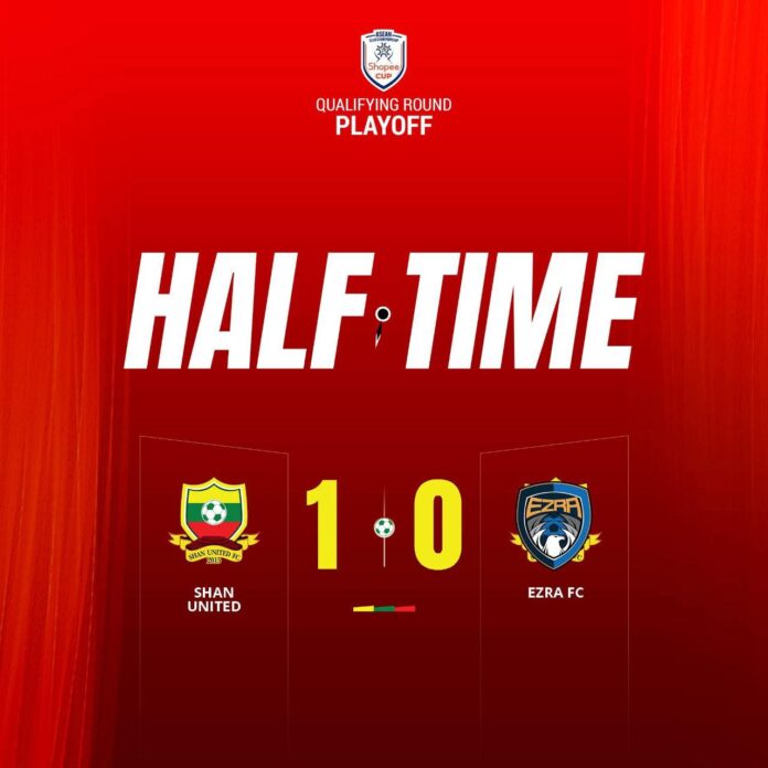 ယနေ့ ဩဂုတ်လ (၁၅ )ရက် ညနေပိုင်း ရန်ကုန်မြို့ သုဝဏ္ဏအားကစားကွင်းတွင် မြန်မာနေရှင်နယ်လိဂ်ကလပ် ၊ ရှမ်းယူနိုက်တက်အသင်းနှင့် လာအိုကလပ် EZRA FC တို့၏ အာဆီယံ ကလပ်ချန်ပီယံရှစ် AFF Shopee Cup 2025/26 ခြေစစ်ပွဲ ဒုတိယ အကျော့ပွဲစဉ် ယှဉ်ပြိုင်လျက်ရှိရာ ရဲရင့်အောင်၏ ပင်နယ်တီသွင်းဂိုးဖြင့် ပထမပိုင်းပွဲချိန်မှာ ရှမ်းယူနိုက်တ က်အသင်းက ဦးဆောင်နေသည်။