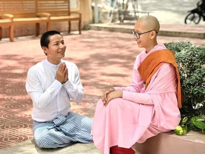 သမီးလေး မေကြေးမုံနဲ့သားလေးဘုန်းပြည့်စုံကိုသာသနာ့ဘောင်ထဲအပြီးတိုင်အပ်နှင်းလိုက်တဲ့ တေးသံရှင် မနော
