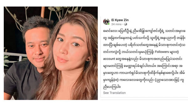 သရုပ်ဆောင်ပြေတီဦးနဲ့ အိန္ဒြာကျော်ဇင်တို့နဲ့ပတ်သက်တဲ့ သတင်းအမှားများကို မယုံကြည်ကြဖို့ ရေးသားခဲ့တဲ့ မအိကျော်ဇင်