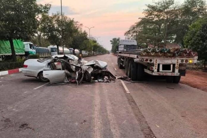 ထိုသို့ မောင်းနှင်လာစဉ် အင်းတကော်မြို့၊ မိုင်တိုင် ၁၆/၁ နှ င့် ၁၆/၂ ကြားအရောက် လမ်းဖြတ်ကူးသူအား ရှောင်ရာမှ လမ်းဘေးတွင် ရပ်ထားသည် FORTON အမျိုးအစား၊ ခြောက်မူးသံလုံးများ တင်ထားသည့် ယာဉ်အား အနောက်မှ ဝင်တို-က်မိခဲ့ခြင်းဖြစ်ကြောင်း သိရသည်။