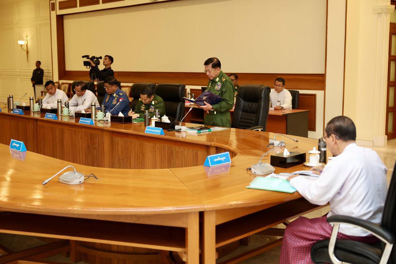 တိုင်းရင်းသားလက် နက်ကိုင်အဖွဲ့အစည်းများရှိ နယ်မြေများ၌ ဖြစ်ပွားနေသည့် တိုက်ပွဲများ အခြေအနေ ၊ မူးယစ်ဆေးဝါး ထုတ်လုပ်ရောင်းဝယ်ခြင်းနှင့် အွန်လိုင်းလိမ်လည်မှုများကို နှိမ်နင်းဆောင်ရွက်လျက်ရှိမှုအခြေအနေများ၊ နိုင်ငံတော်ဖွံ့ဖြိုးတိုးတက်ရေးနှင့် ပညာရေးကဏ္ဍမြှင့်တင်ရေးအတွက် ဆောင်ရွက်လျက်ရှိမှုအခြေအနေများ၊ လွတ်လပ်၍ တရားမျှတသည့် ပါတီစုံဒီမိုကရေစအထွေထွေ ရွေးကောက်ပွဲကျင်းပနိုင်ရေးအတွက် ပြင်ဆင်ဆောင်ရွက်လျက်ရှိမှုအခြေအနေများ၊ ပြည်လုံးကျွတ်သန်းခေါင် စာရင်းကောက် ယူရန် ကြိုတင်ပြင်ဆင်ဆောင်ရွက်လျက်ရှိမှုအခြေအနေများ၊ နိုင်ငံအား တည်ငြိမ်အေးချမ်းသည့် ပုံမှန်အနေအထား၊ သာမန်အနေအထားသို့ရောက်အောင် ဆက်လက်ဆောင်ရွ က်ရန် လိုအပ်နေသေးသည့် အခြေအနေများနှင့် ပတ်သ က်၍ တပ်မတော်ကာကွယ်ရေး ဦးစီးချုပ်က တင်ပြဆွေး နွေးခဲ့ကြောင်း သိရသည်။