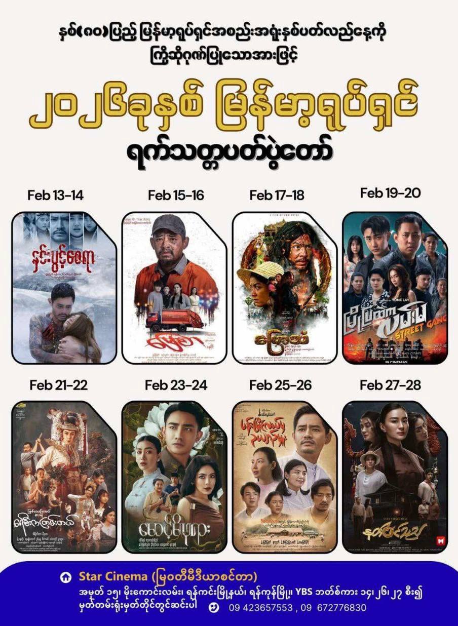 ပြသမည့်ဇာတ်ကားများသည် အကယ်ဒမီဆုရ ဇာတ်ကားများသည့် နှင်းပွင့်စေရာ၊ မြေစာ၊ ဗြောသံ၊ မြို့ပြထဲကလ မ်းမ၊ မြစ်လက်တက်ပေမဲ့ ရေစီးကကြမ်းတယ်၊ မောင့်မိဖုရား၊ ပန်းမြိုင်လယ်မှ ဥယျာဉ်မှူး၊ နတ်ဝင်သည် စသည့် ဇာတ်ကားများဖြစ်သည်။