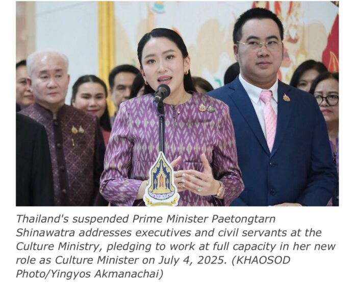 ကမ္ဘောဒီးယားအထက်လွှတ်တော်ဥက္ကဋ္ဌ ဟွန်ဆန်နှင့် ဖုန်းပြောသည့်အသံဖိုင် ပေါက်ကြားမှုကြောင့် တရားရုံးက ရာထူးမှ ဆိုင်းငံ့ထား သော၀န်ကြီးချုပ် ပေတုံတန်၏ ကံကြမ္မာအဆုံးအဖြတ်မှာ ဖွဲ့စည်းပုံ အခြေခံဥပဒေ တရားရုံးက ၁ လမှ ၃ လအထိ အချိန်ယူရဖွယ်ရှိသည်။လက်ရှိတွင် သူမသည် အစိုးရအဖွဲ့ထဲတွင် ယဥ်ကျေးမှုဝန်ကြီးအဖြစ် ရှိနေသည်။