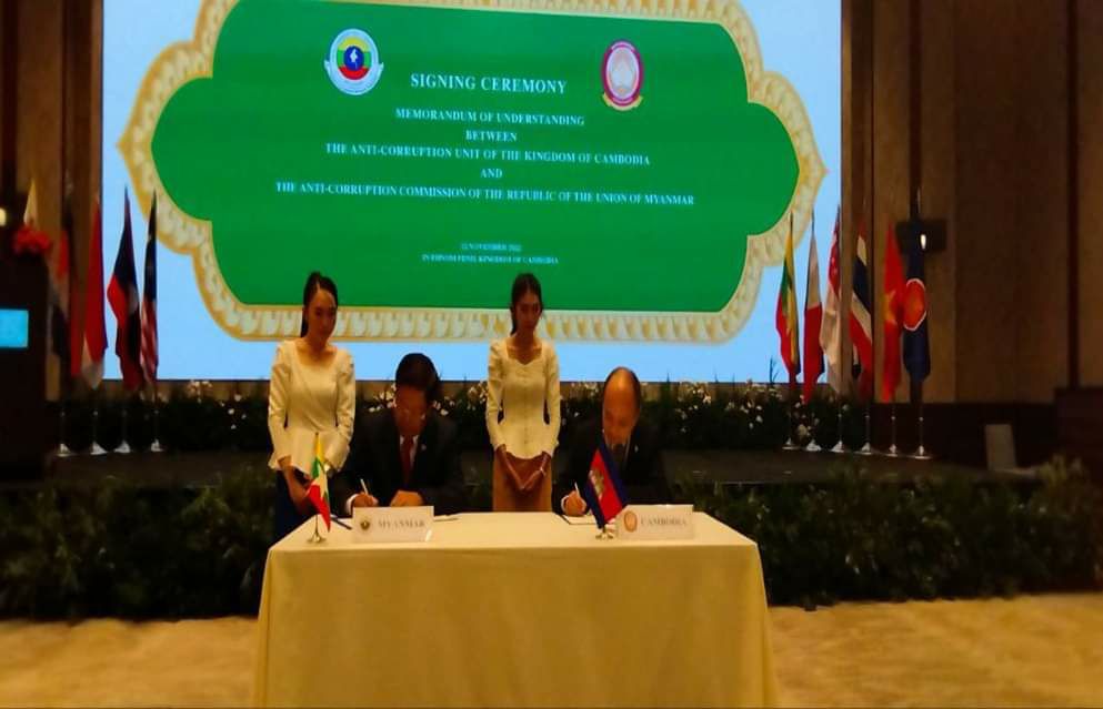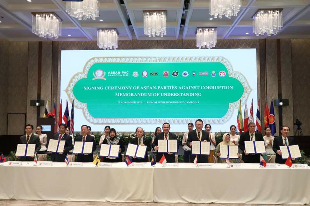 ကမ္ဘောဒီးယားနိုင်ငံ၊ဖနွမ်းပင်မြို့၊ Hyatt Regency Phnom Penh ဟိုတယ်၌ အာဆီယံအဂတိလိုက် စားမှုတိုက်ဖျက်ရေးအဖွဲ့(ASEAN Parties Against Corruption_ ASEAN-PAC)၏ (၁၈) ကြိမ်မြောက်အကြီးအမှူးများအစည်းအဝေးကို နိုဝင်ဘာ ၂၂ ရက်ကကျင်းပရာ မြန်မာနိုင်ငံအဂ တိလိုက်စားမှုတိုက်ဖျက်ရေးကော်မရှင် ဥက္ကဋ္ဌဦးသန်းဆွေတက်ရောက်၍ လက်မှတ်ရေးထိုးခဲ့ခြင်းဖြစ်သည်။