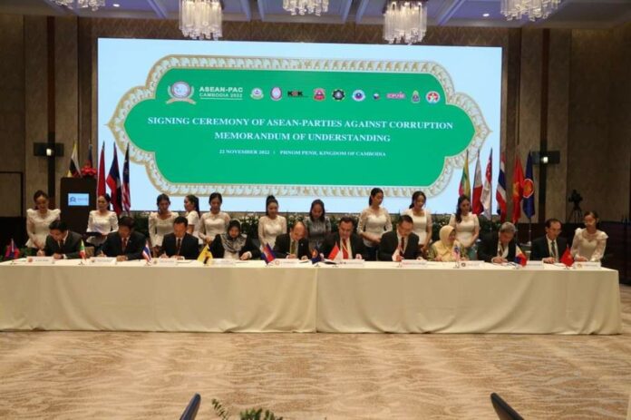 ကမ္ဘောဒီးယားနိုင်ငံ၊ဖနွမ်းပင်မြို့၊ Hyatt Regency Phnom Penh ဟိုတယ်၌ အာဆီယံအဂတိလိုက် စားမှုတိုက်ဖျက်ရေးအဖွဲ့(ASEAN Parties Against Corruption_ ASEAN-PAC)၏ (၁၈) ကြိမ်မြောက်အကြီးအမှူးများအစည်းအဝေးကို နိုဝင်ဘာ ၂၂ ရက်ကကျင်းပရာ မြန်မာနိုင်ငံအဂ တိလိုက်စားမှုတိုက်ဖျက်ရေးကော်မရှင် ဥက္ကဋ္ဌဦးသန်းဆွေတက်ရောက်၍ လက်မှတ်ရေးထိုးခဲ့ခြင်းဖြစ်သည်။