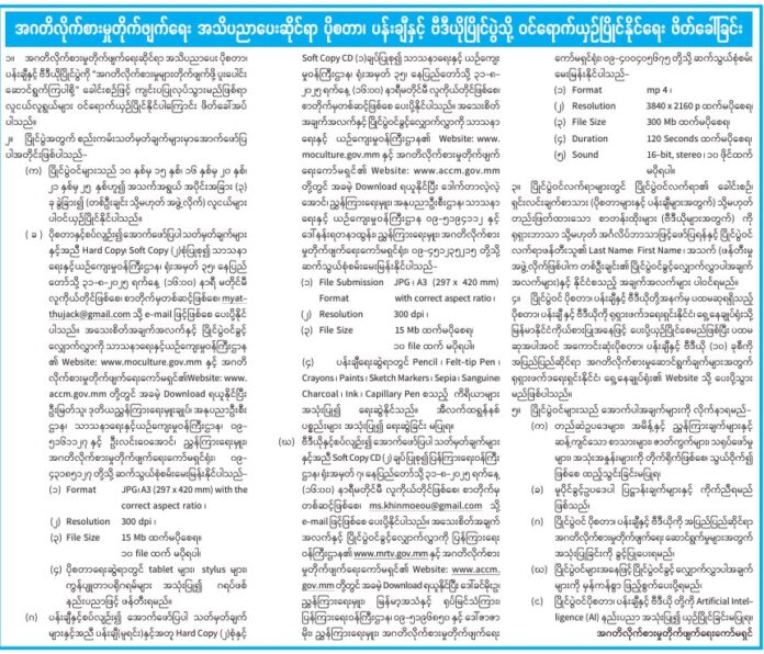 အဂတိလိုက်စားမှု တို-က်ဖျ-က်ရေးနှင့် ပတ်သက်သည့် အသိပညာပေး ပိုစတာ၊ ပန်းချီ နှင့် ဗီဒီယို ပြိုင်ပွဲ ပြုလုပ်မည်ဖြစ်ပြီး ဝင်ရောက်ယှဉ်ပြိုင်နိုင်ရန် အဂတိလိုက်စားမှု တို-က်ဖျ-က်ရေးကော်မရှင်က ယနေ့ ဩဂုတ်(၅)ရက်တွင် အသိပေးထားသည်။