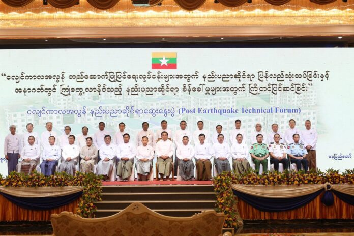 ငလျင်ကာလအလွန် တည်ဆောက်ပြုပြင်ရေးလုပ်ငန်းများအတွက် နည်းပညာဆိုင်ရာပြန်လည်သုံးသပ်ခြင်းနှင့် အနာဂတ်တွင်ကြုံတွေ့လာနိုင်သည့် နည်းပညာဆိုင်ရာ စိန်ခေါ်မှုများအတွက်ကြိုတင်ပြင်ဆင်ခြင်း”ခေါင်းစဉ်ဖြင့် ငလျင်ကာလအလွန်နည်းပညာဆိုင်ရာဆွေးနွေးပွဲကို ယနေ့ ဇူလိုင် ၂၈ ရက်နံနက်ပိုင်းက နေပြည်တော်၌ကျင်းပခဲ့သည်။