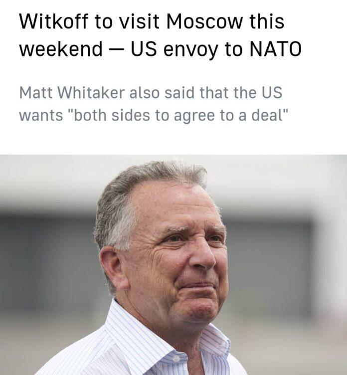 အမေရိကန်သမ္မတ၏ အထူးသံတမန် Steve Witkoff သည် ယခုရက်သတ္တပတ်တွင် ရုရှားနိုင်ငံမော်စကိုမြို့သို့ သွားရောက်မည်ဖြစ်ကြောင်း NATO ဆိုင်ရာ အမေရိကန် အမြဲတမ်းကိုယ်စားလှယ် Matt Whitaker က ပြောကြားသည်။