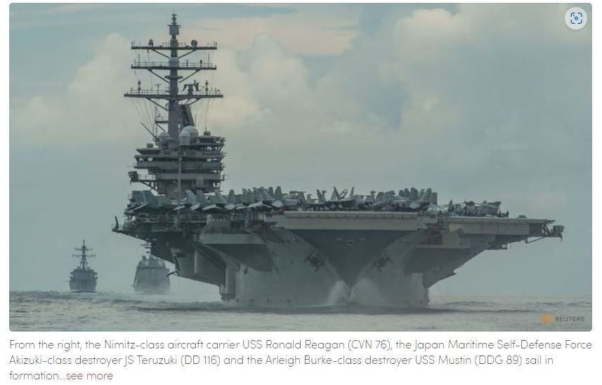 မြောက်ကိုရီးယားကိုဟန့်တားရန် မဟာမိတ်များက အမေရိက၏ နျူကလီးယားမဟာဗျူဟာပိုင်ဆိုင်မှုများကို ဖြန့်ကျက်ထားရန်ကြိုးပမ်းနေချိန်တွင် အမေရိကန်လေယာဉ်တင်သင်္ဘောသည် လေးနှစ်အတွင်းပထမဆုံးအကြိမ် ပူးတွဲစစ်ရေးလေ့ကျင့်ရန် တောင်ကိုရီးယားသို့ ယခုတစ်ပတ်အတွင်းလာရောက်မည်ဖြစ်ကြောင်း နှစ်နိုင်ငံတာဝန်ရှိသူများက စက်တင်ဘာ ၁၉ ရက် တနင်္လာနေ့ကပြောကြားခဲ့သည်။