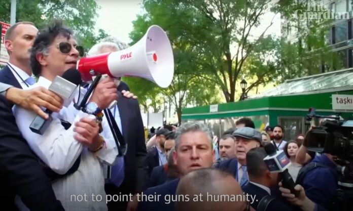 ပက်ထရိုသည် ကြာသပတေးနေ့က ကုလသမဂ္ဂအထွေထွေညီလာခံကာလအတွင်း ယူအင်န်ရုံးချုပ်အပြင်ဘက်ရှိ ပါလက်စတိုင်းကိုထောက်ခံ ဆန္ဒပြသူများကို မိန့်ခွန်းပြောကြားခဲ့ရာ၌ ပါလက်စတိုင်းလွတ်မြောက်ရေးကို ဦးစားပေးရန် ကမ္ဘာလုံးဆိုင်ရာလက်နက်ကိုင်တပ်ကို တောင်းဆိုခဲ့ပြီး အမေရိကန်စစ်သားများအနေဖြင့် လူတွေကို ေ-သနတ်နှင့် မချိန်ရွယ်ရန်၊ ထရမ့်ပ်၏ အမိန့်ကို မနာခံရန်နှင့် လူသားဆန်သောအမိန့်များကိုသာနာခံရန် တို-က်တွန်းသွားခဲ့သည်။
