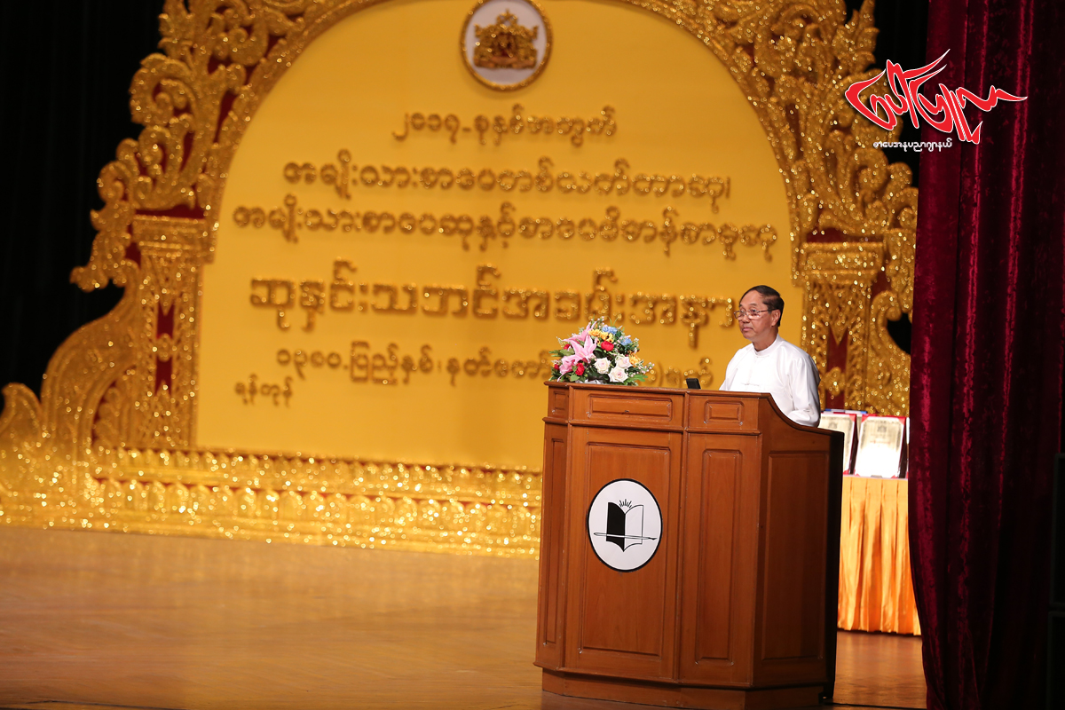 ၂ဝ၁၇ ခုႏွစ္အတြက္ အမ်ဳိး သားစာေပတစ္သက္တာဆု၊ အမ်ဳိး သားစာေပဆုႏွင့္ စာေပဗိမာန္စာမူဆု ဆုႏွင္းသဘင္အခမ္းအနားကို ယေန႔ (ဒီဇင္ဘာ ၈ ရက္) နံနက္က ရန္ကုန္ ၿမိဳ႕ အမ်ဳိးသားဇာတ္႐ံုတြင္ က်င္းပခဲ့ သည္။