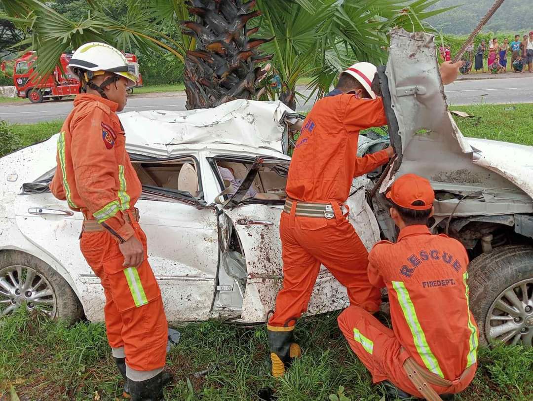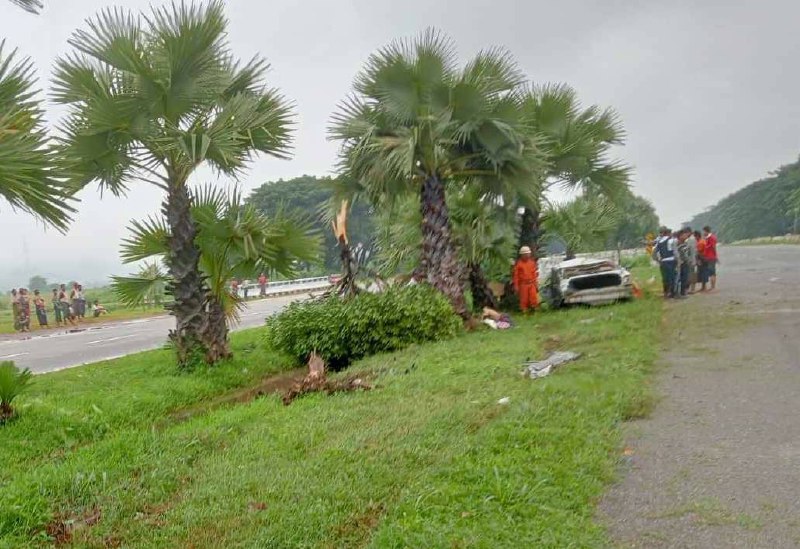 ယနေ့နံနက် ၈ နာရီခွဲခန့်က ရန်ကုန်-မန္တလေးအမြန်လမ်းမကြီး၏ ၁၁၅ မိုင်အမြန်လမ်းမီးသတ်စခန်းအပိုင် မိုင်တိုင်အမှတ် ၁၁၃/၄ နှင့် ၁၁၃/၅ ကြားလမ်းအကွေ့တွင် TOYOTA CROWN ကားသည် အရှိန်မထိန်းနိုင်ဘဲ လမ်းလယ်ကျွန်းရှိ ခရေပင်နှင့်ထန်းပင်တို့အားဝင်ရောက်တိုက်မိခဲ့သည်။