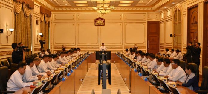 ကာလုံခေါ်ကာ အရေးပေါ်ကာလ(၆)လထပ်မံသက်တမ်းတိုးပြီးနောက် အသစ်ပြင်ဆင်ဖွဲ့စည်းခဲ့သည့် ပြည်ထောင်စုအစိုးရအဖွဲ့၏ လုပ်ငန်းညှိနှိုင်းအစည်းအဝေးအား ယနေ့ ဖေဖော်ဝါရီ ၃ ရက်နံနက်ပိုင်းက နေပြည်တော်၌ကျင်းပရာ နစက ဥက္ကဋ္ဌ၊ နိုင်ငံတော်ဝန်ကြီးချုပ် ဗိုလ်ချုပ်မှူးကြီးမင်းအောင်လှိုင် တက်ရောက်ခဲ့သည်။