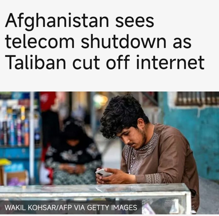 အာဖဂန်နစ္စတန်ရှိ တာလီဘန်အစိုးရသည် ဖိုင်ဘာအော့ပ်တစ် အင်တာနက်လိုင်းများကို ဖြ-တ်တေ-ာက်ပြီးနောက် ရက်သတ္တပတ်များအကြာတွင် တစ်နိုင်ငံလုံးအတိုင်းအတာဖြင့် ဆက်သွယ်ရေးစနစ် ရပ်ဆိုင်းသွားပြီဖြစ်သည်။