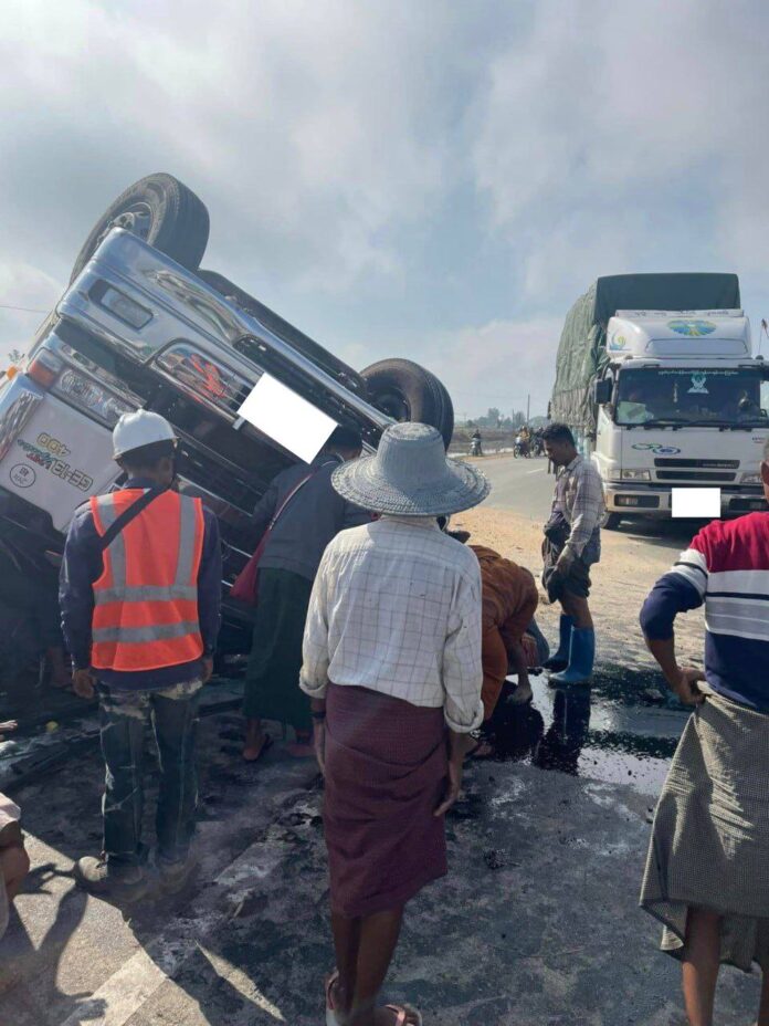 အုတ်တွင်းမြို့တွင် တွဲကားတစ်စီး လမ်းလယ်ခေါင်၌ တိမ်းမှောက်ရာ ယာဉ်နောက်လိုက် ကားခေါင်းခန်းအတွင်း ညပ်နေ၍ ကယ်ထုတ်ခဲ့ရ