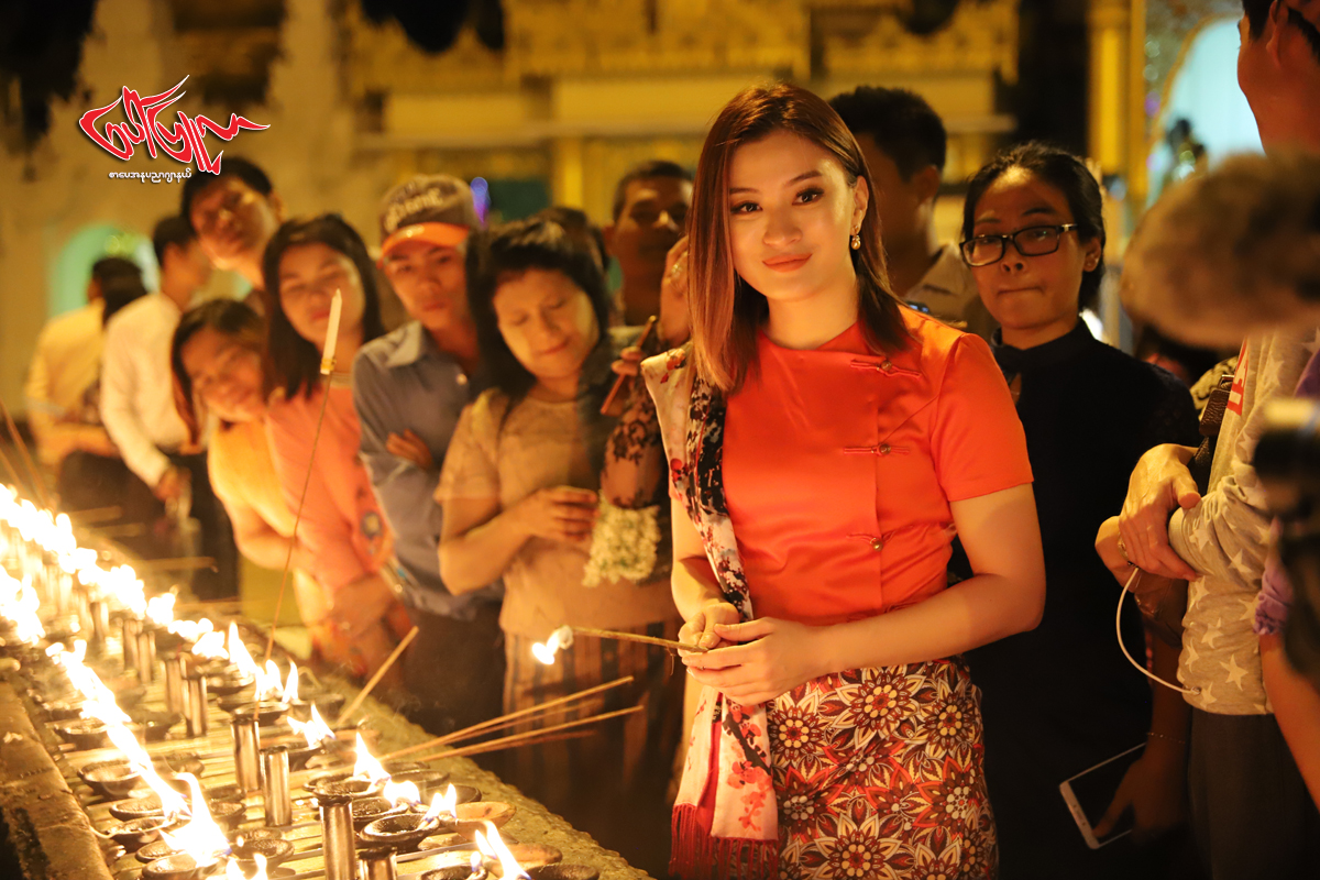 ေမြးေန႔အလွဴအျဖစ္ ေရႊတိဂံုဘုရားမွာ ဆီမီး ၁၁,ဝဝဝ ထြန္းညိႇပူေဇာ္ခဲ့တဲ့ အကယ္ဒမီ ဝတ္မႈံေရႊရည္