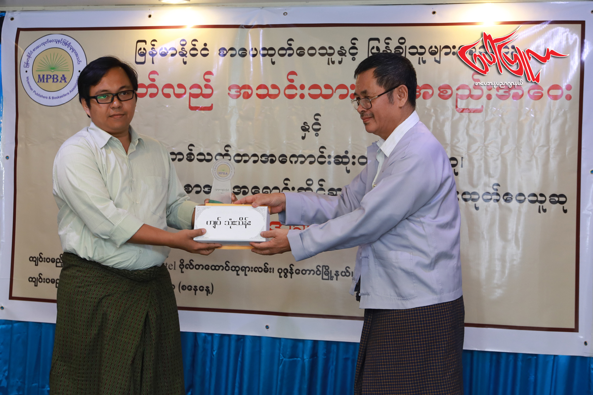 ျမန္မာႏိုင္ငံ စာေပထုတ္ေဝသူႏွင့္ ျဖန္႔ခ်ိ သူမ်ား အသင္း၏ တတိယအႀကိမ္အမႈေဆာင္ ေရြးခ်ယ္တင္ ေျမႇာက္ပြဲ၊ ႏွစ္ပတ္လည္ စံုညီအစည္း အေဝးႏွင့္ ၂ဝ၁၇ ခုႏွစ္အတြက္ အေကာင္းဆံုးစာအုပ္ထုတ္ေဝသူဆု၊ အေကာင္းဆံုး စာအုပ္အေရာင္းဆိုင္ဆု၊ တစ္သက္တာ စာေပတိုက္ဆုတို႔အား ေပးအပ္ခ်ီးျမွင့္ပြဲ အခမ္းအနားကို ရန္ကုန္ၿမိဳ႕၊ Orchid Hotel တြင္ ႏိုဝင္ဘာလ ၂၄ ရက္ေန႔ ေန႔လယ္ ၁ နာရီမွ ၃ နာရီအထိ က်င္းပျပဳလုပ္ ခဲ့သည္။