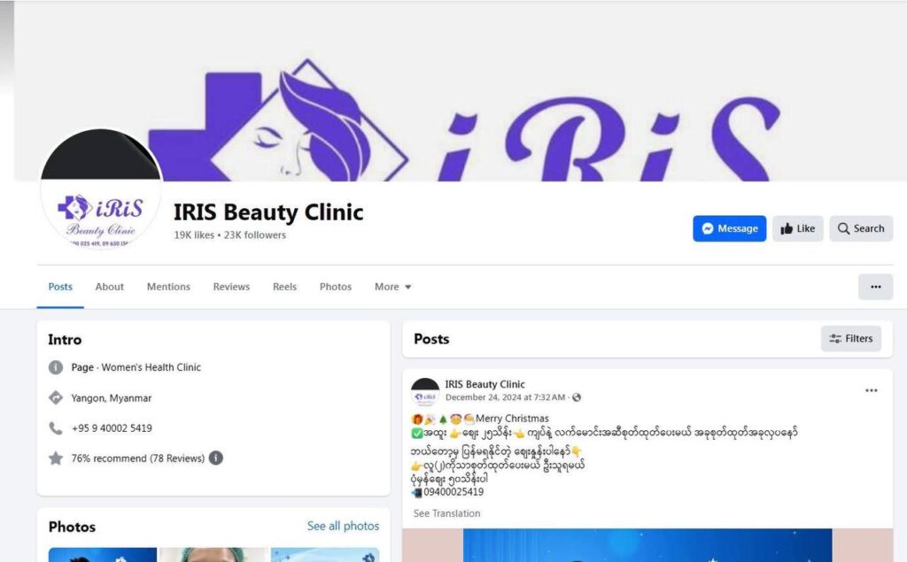 လက်ရှိတွင် IRIS Beauty Clinic ပိုင်ရှင် လင်မယားသည် သင်္ဃန်းကျွန်းရှိ ငှားရမ်းတိုက်ခန်းထားသော တိုက်ခန်းကို ပြန်လည်အပ်နှံပြီး ထွက်ပြေးတိမ်းရှောင်နေကာ အမှုကို သ က်ဆိုင်ရာက လိုက်လံစုံစမ်းနေသည်ဟု သိရှိရသည်။