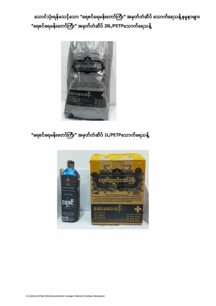 ကျန်းမာရေးဝန်ကြီးဌာန၊အစားအသောက်နှင့်ဆေးဝါးကွပ်ကဲရေးဦးစီးဌာန(FDA Myanmar)မှ “ရေစင်ရေမန်းတော်ကြီး”အမှတ်တံဆိပ်သောက် ရေသန့်အား ဓာတ်ခွဲစစ်ဆေးခဲ့ပြီးနောက် အသိ ပေးထုတ်ပြန်ခဲ့ခြင်းဖြစ်သည်။